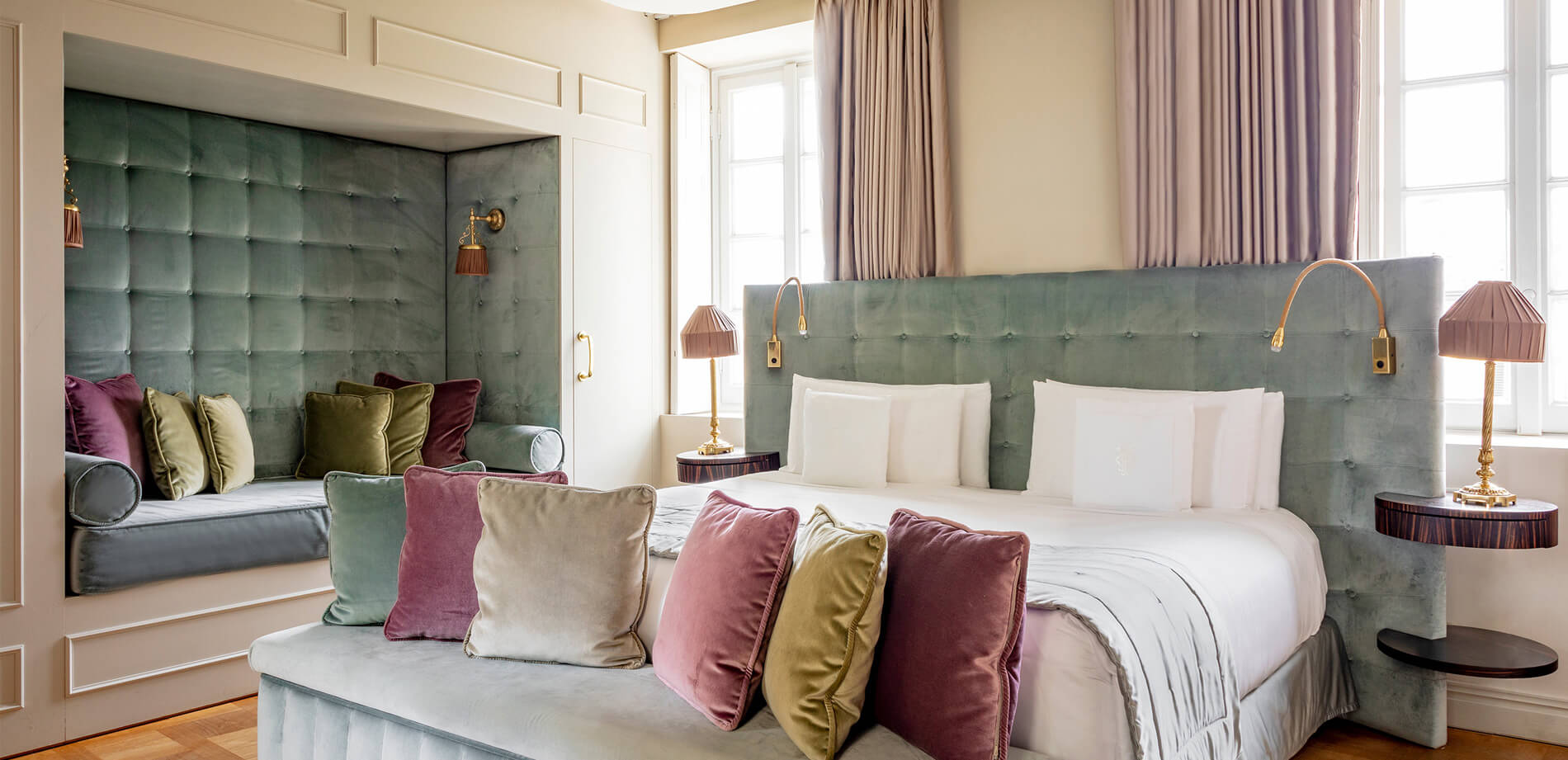 Per la Suite Emilia, Zonca Lighting ha scelto di comporre un’atmosfera di luce soffusa alternando le iconiche creazioni della collezione firmata Jacques Garcia.